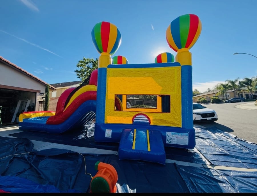 The Mega Balloon Combo is a show-stopping inflatable for backyard parties and events. This large bounce house features colorful hot air balloons on top, a built-in basketball hoop, and a versatile wet-or-dry play mode. Perfect for kids’ birthdays, community events, or rental businesses looking for a high-impact attraction. 🎉