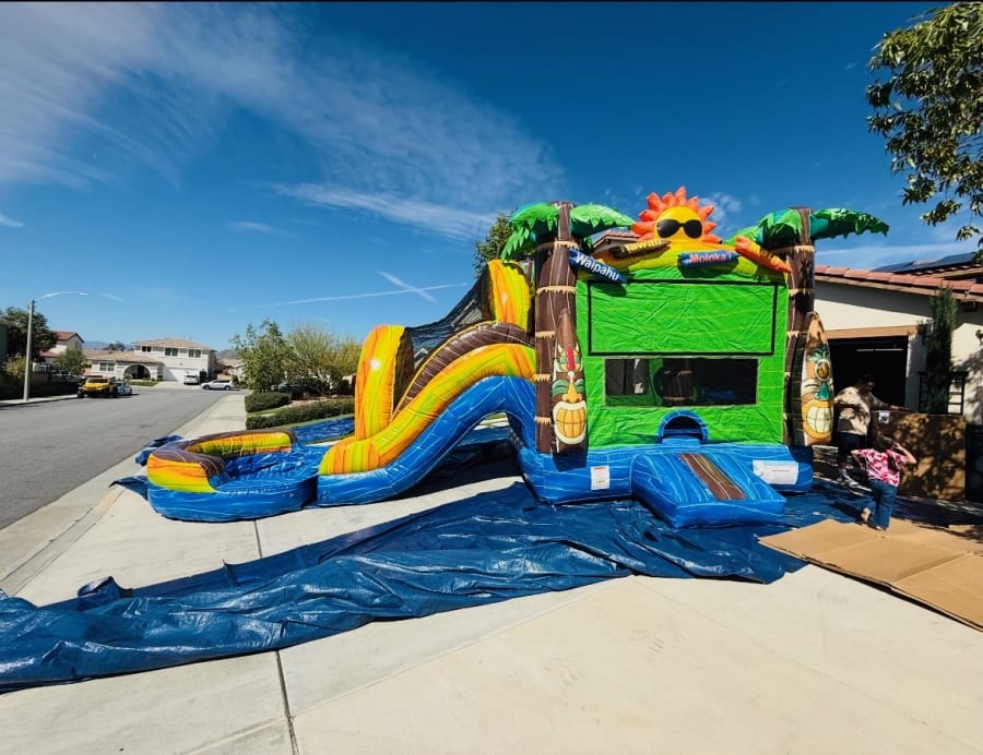 Bring island vibes to your next party with the Mega Hawaiian Combo, a large Hawaiian-themed combo jumper that delivers big fun and bright style. This inflatable features a roomy bounce area and a built-in basketball hoop for active play, and it can be used wet or dry to match the season and your event needs. Perfect for backyard birthdays, family gatherings, school events, or neighborhood block parties, the Mega Hawaiian Combo keeps kids engaged and smiling for hours. 😄