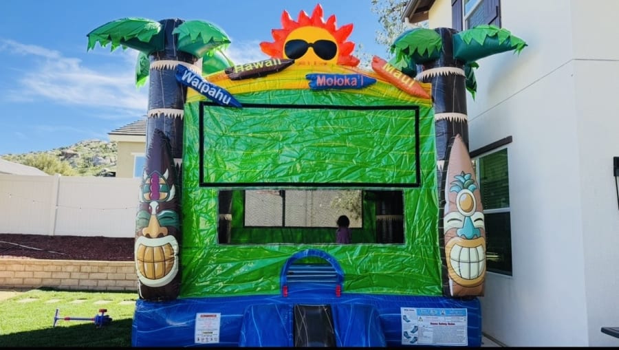 Hawaiian Bouncer is a vibrant Hawaiian themed bounce house built for non-stop summer fun. Bright tropical graphics, palm motifs, and a built-in basketball hoop create an instant party atmosphere. This bounce house combines safe active play with eye-catching design. Perfect for backyard parties, luaus, school events, and community festivals. ππ